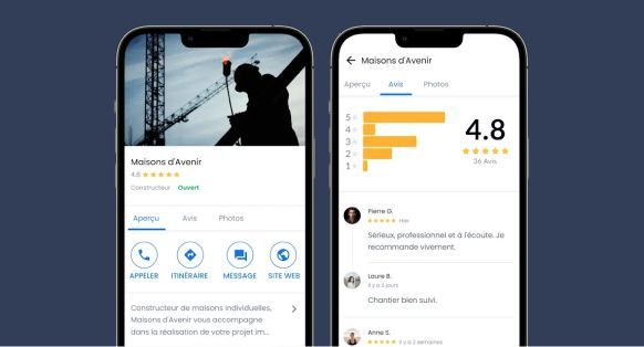 Votre fiche Google et vos avis clients rassurent vos prospects et les incitent à vous contacter.